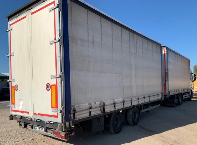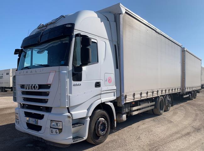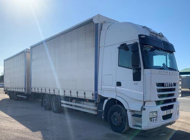 MOTRICE 3 ASSI IVECO STRALIS 450 CON CASSONE CENTINATO CON TELONE COPRI E SCOPRI, ANNO 2007 KM. 1471644 + RIMORCHIO CENTINATO WECOMAWZ218LZ ANNO 2008